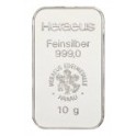 Feinsilberbarren mit 10 Unzen Gewicht . 999,9 % reines Silber . Gesamtgewicht 311 gramm