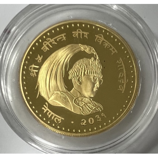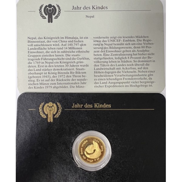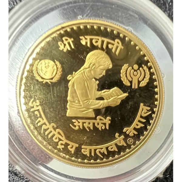 1 Asharfi Goldmünze Jahr des Kindes Nepal