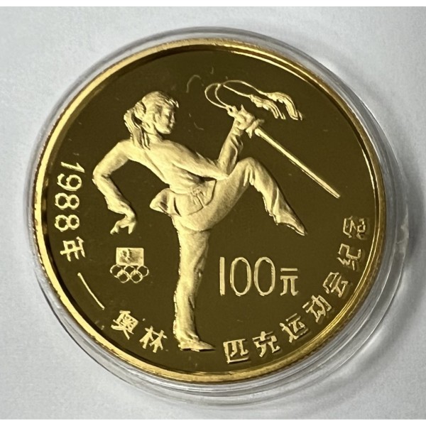 1/2oz 100 Yuan Schwerttänzer China 1988 Goldmünze