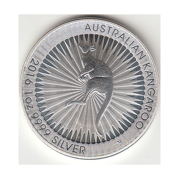 Die australische Kangaroo Münze in 999,9 reinem Feinsilber. 1 unze Feinsilber als Anlagesilber . Auf der Münzvorderseite wie gewohnt die Queen Elisabeth II und auf der Rückseite das australische Markenzeichen ; das