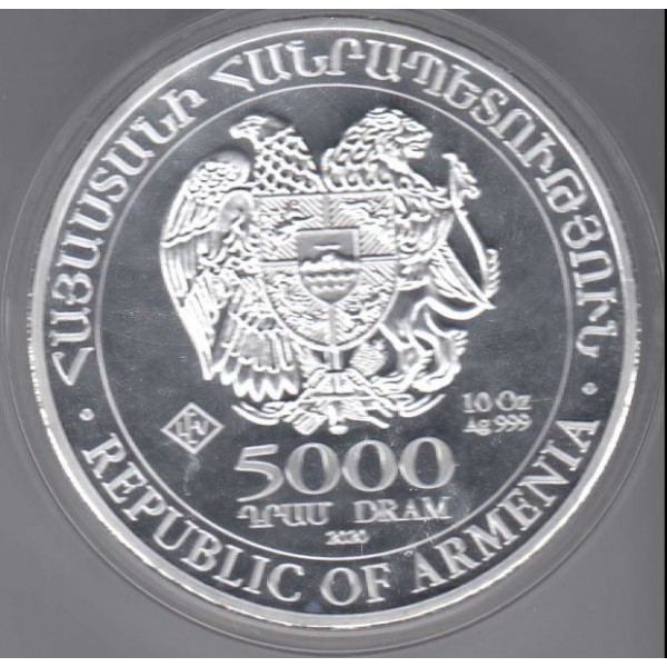 Eine Feinsilbermünze aus Armenien mit dem Motiv der biblischen Geschichte der Arche Noahs. 311 gramm Feinsilber mit dem Nominalwert von 5000 Dram . Das Prägejahr ist 2020.