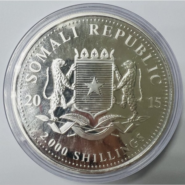 1 Kilo Feinsilber Münze aus Somalia . Aus dem Jahr 2015 mit dem Nominalwert von 2000 Shillings.