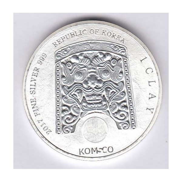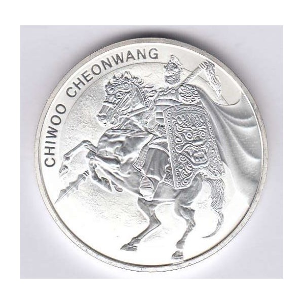 Die Chiwoo Cheonwang Silbermünzen aus Südkorea ein heroisches Bild des Kriegers mit einem mannshohen Schwert vor einem Schild.