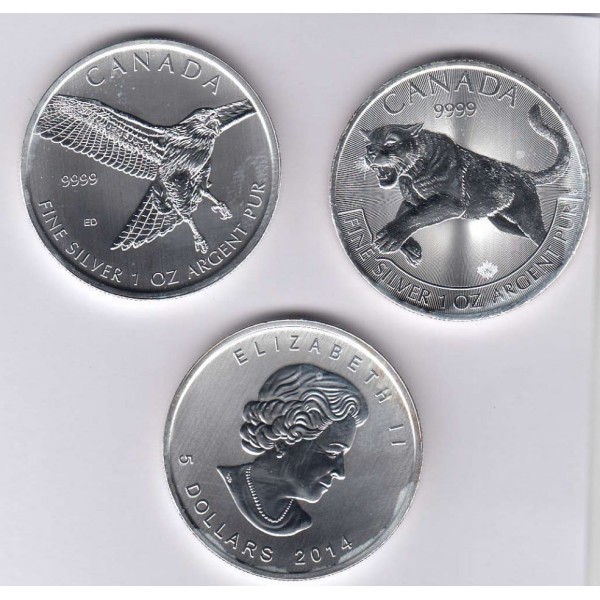 Die Birds of Prey Silbermünzen werden seit 2014 von der Royal Canadian Mint geprägt. Sie gelten als Nachfolger der beliebten Canadian Wildlife Serie, die sich ebenfalls mit der Tierwelt in Kanada befasst. Zweijährige Serie mit zwei Motiven pro Jahr: Erstes Birds of Prey Motiv war der Peregrine Falcon (Wanderfalke) 2014, gefolgt vom Bald Eagle 2014 und Red-Tailed Hawk 2015 (Rotschwanzbussard).