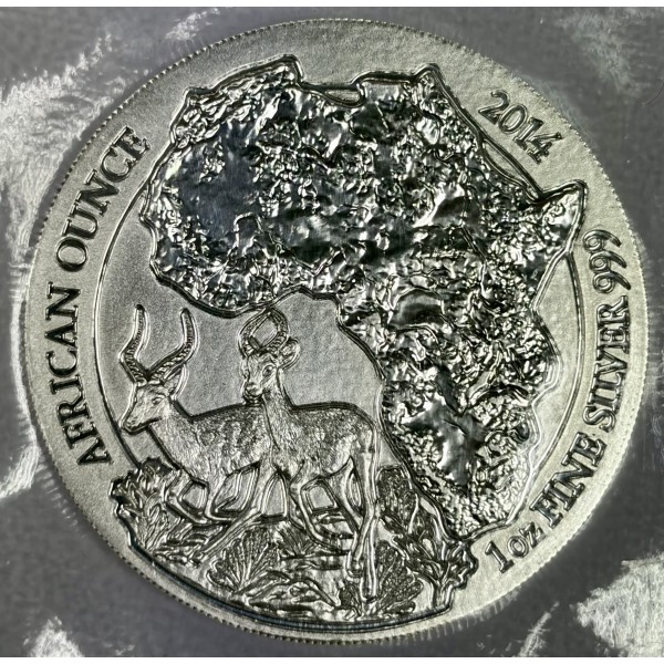 Die Ruanda Silbermünze wird auch African Ounce genannt und seit 2008 mit jährlich wechselndem Motiv unter Lizenz der Nationalbank Ruanda geprägt. Die Serie zeigt bekannte Tiermotive Afrikas: Berggorilla, Elefant, Löwe, Zebra , Nashorn, Gepard, Impala/Antilope, Kaffernbüffel, Erdmännchen, Flusspferd, Giraffe, Schuhschnabel, Bushbaby, Okapi, Pelikan und Nilkrokodil. Aktuelle Motive: Leopard 2024 und Kampfadler 2025. Auf der Wertseite befindet sich das ruandische Siegel, das seit 2002 offiziell verwendet wird. Die Silbermünze erscheint in 1 oz als Normalprägung und stark limitiert als Proof (Polierte Platte). Die Ruanda Silber Ausgabe ist seit 2012 zudem als Münzbarren in der Stückelung 1 kg und seit 2019 in Gold und seit 2022 in Platin erhältlich.