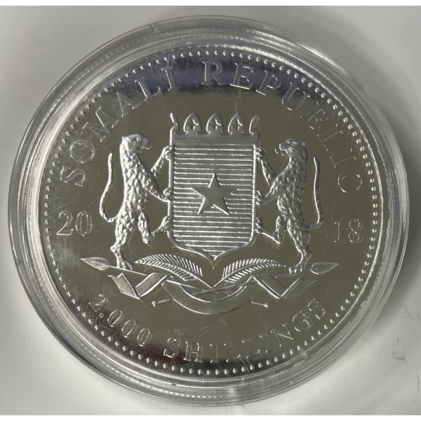 1 Kilo Feinsilber Münze aus Somalia . Aus dem Jahr 2018 mit dem Nominalwert von 2000 Shillings.