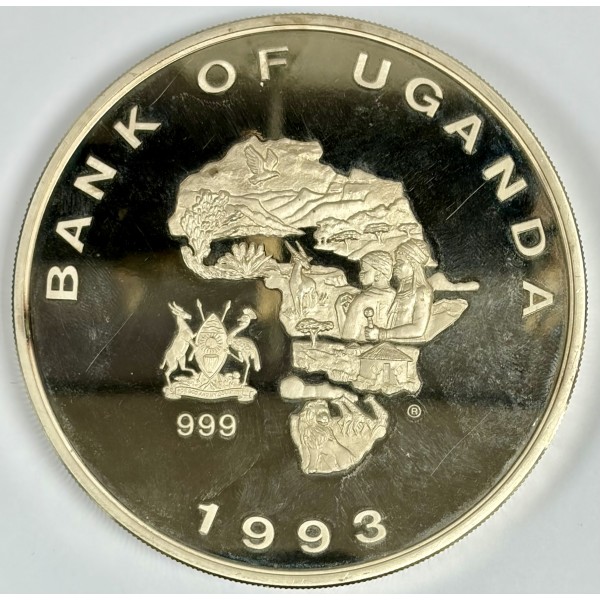 1 Kilo Feinsilber Münze aus Uganda. Aus dem Jahr 1993 mit dem Nominalwert von 10000 Shillings.