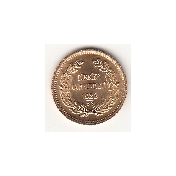Die Zahl 1923 steht für das Datum der Gründung der Türkischen Republik. Die darunter stehende 2 stellige Zahl addiert man zu 1923 und man bekommt das Prägejahr.